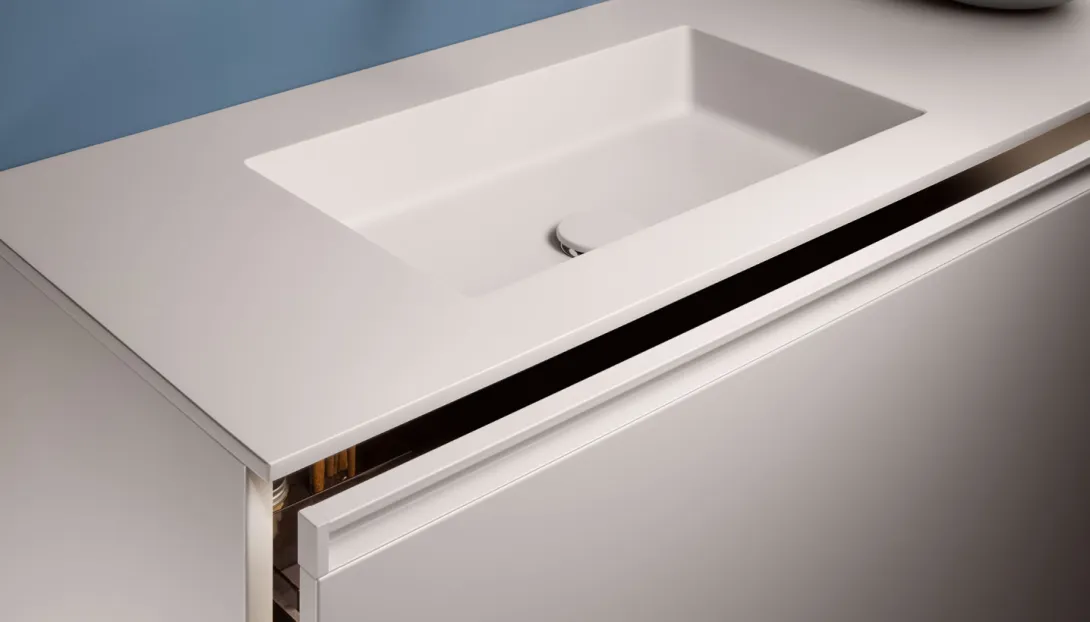 - Modulare oder einteilige Waschtischlösungen